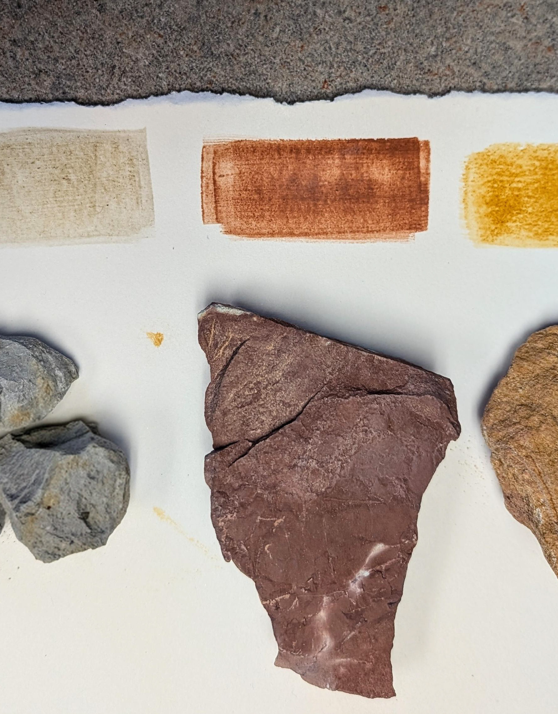 Accented with homemade pigments, these are printed reproductions of my field sketches with original painted details. The watercolors are made from rocks of the geologic formation that created the feature in the drawing. Each painting is one of a kind, with a piece of the land incorporated into the work.