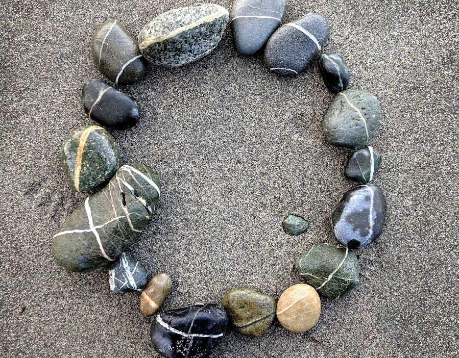 These plein-air sculptures are a physical meditation process sculpted in tandem with the tides that ground down and deposited the stones.