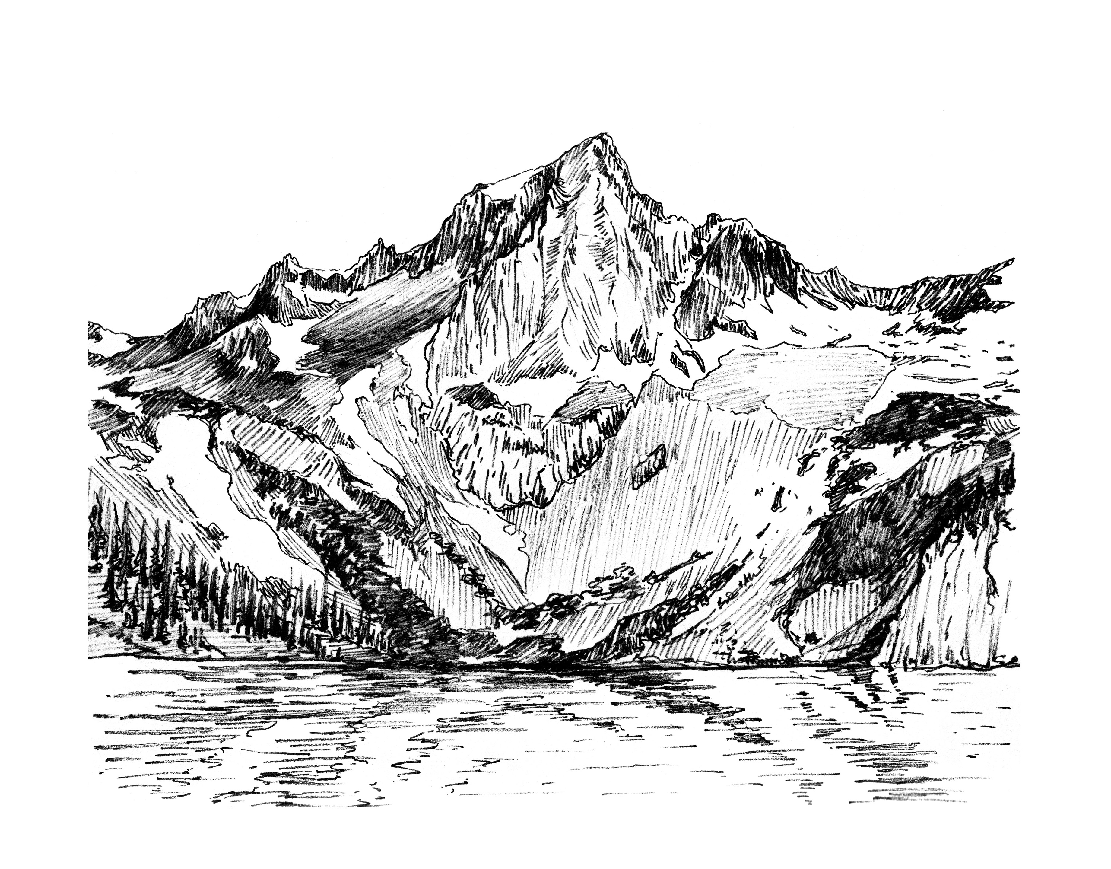 These pen and ink drawings document landscapes encountered during ecological field research, outdoor education courses, and geological study. Each piece is created on-site (plein air) as both artistic practice and scientific observation. The work explores how ecological processes shape the landscapes we see today, connecting deep time to present experience.